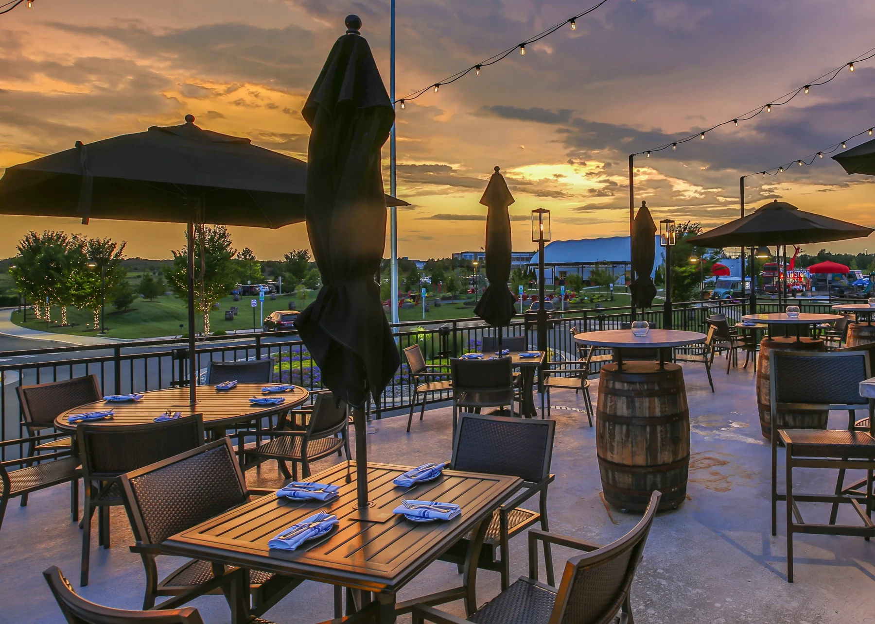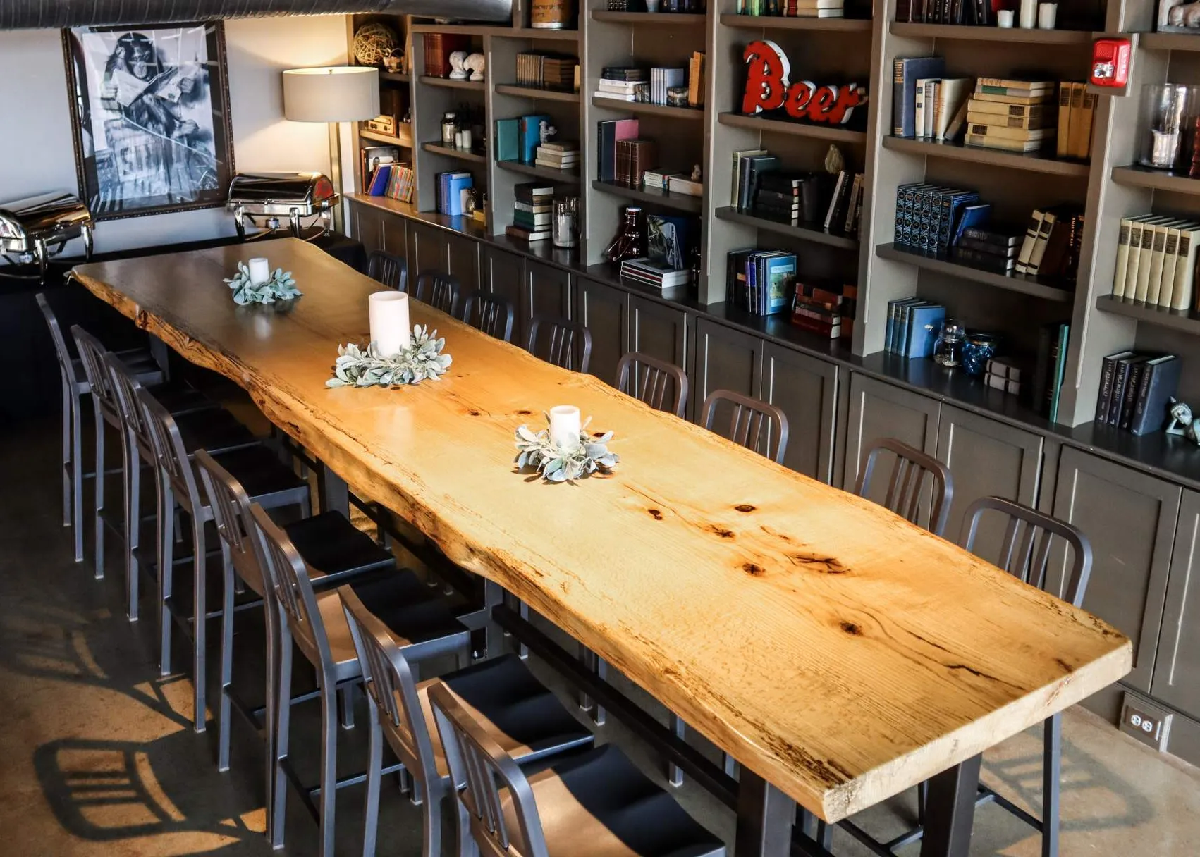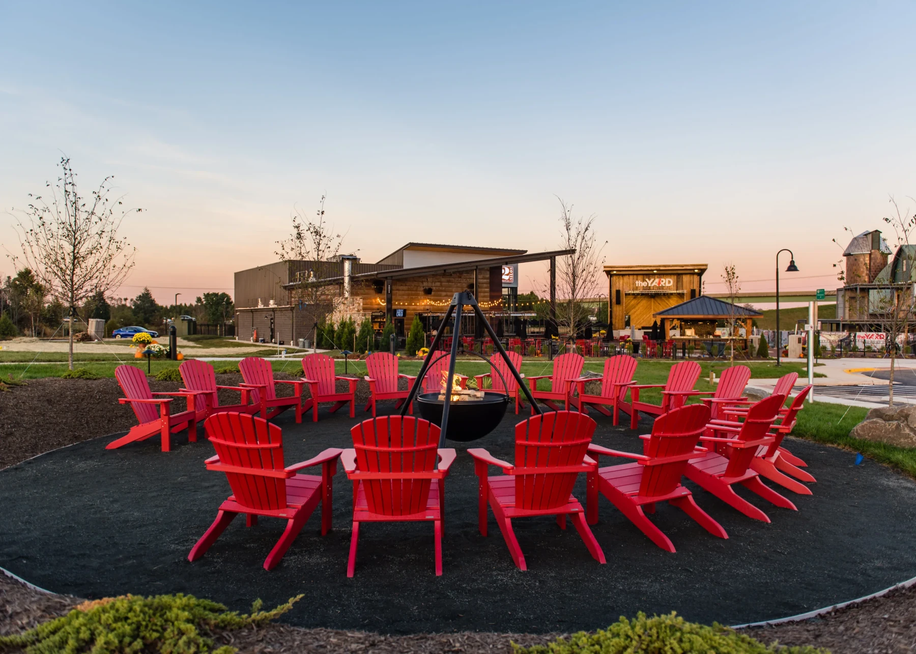 The Mason Room is a unique alternative to traditional rental spaces. Featuring brilliant chandeliers and walnut dining tables with a luxurious yet rustic feel, The Mason Room is the perfect venue for rehearsal dinner parties, corporate gatherings, and special occasions of any kind. The space can be used on its own or easily combined with the adjacent private patio. The patio lounge is perfect for hosting cocktail hours and provides casual seating areas with views of the campus and theYARD music venue.