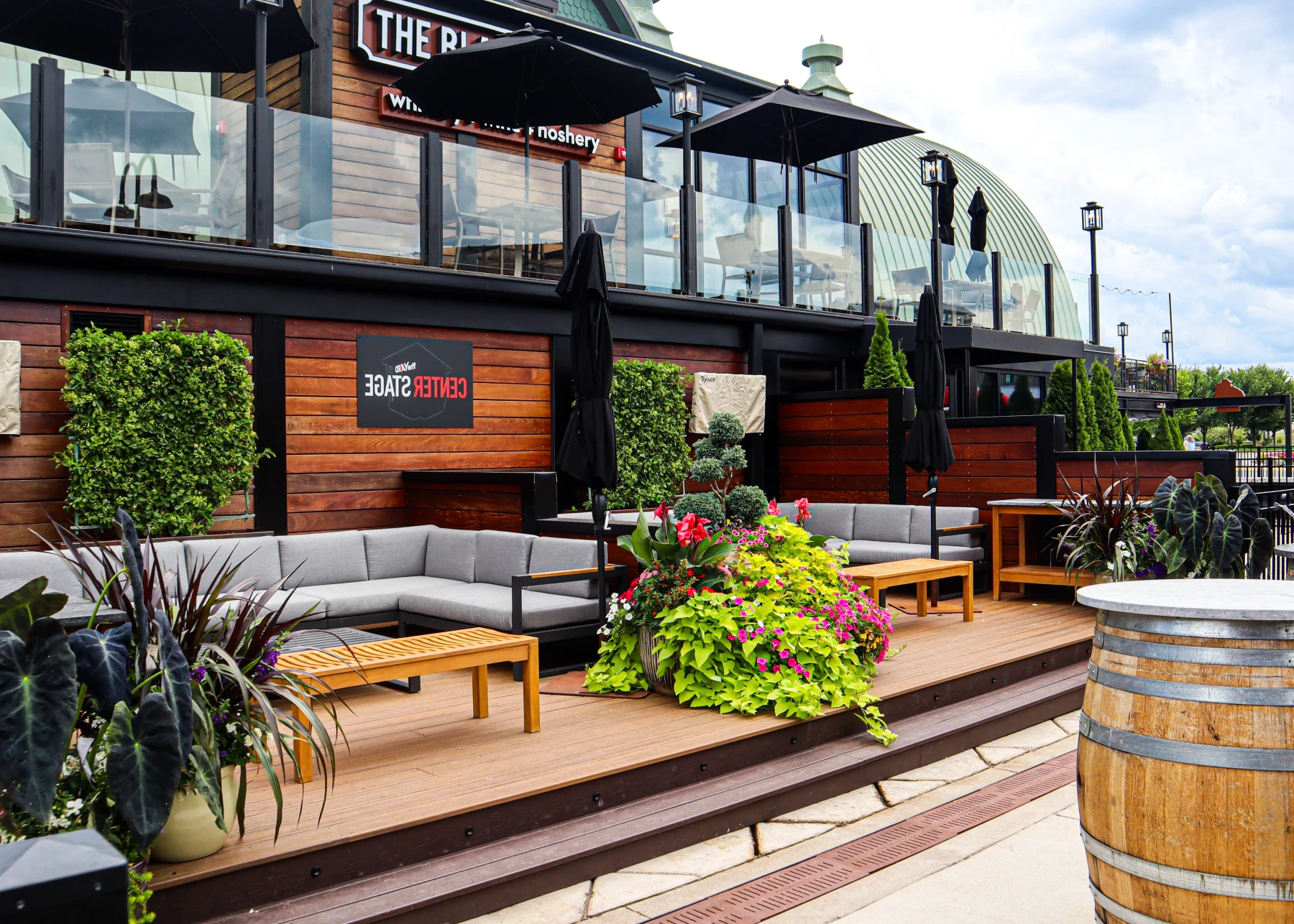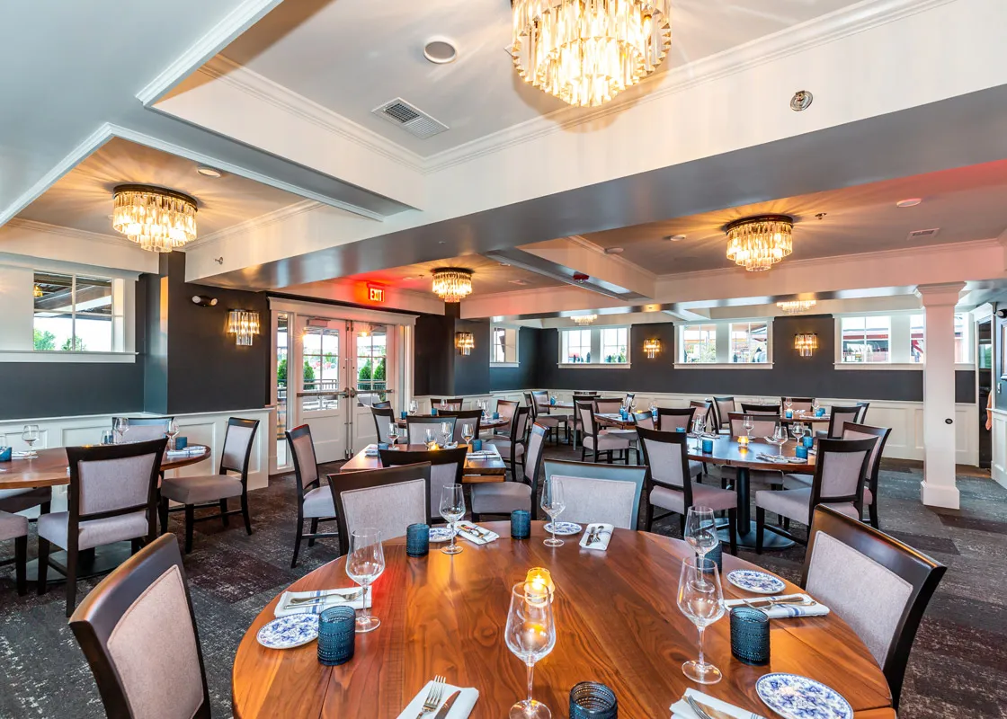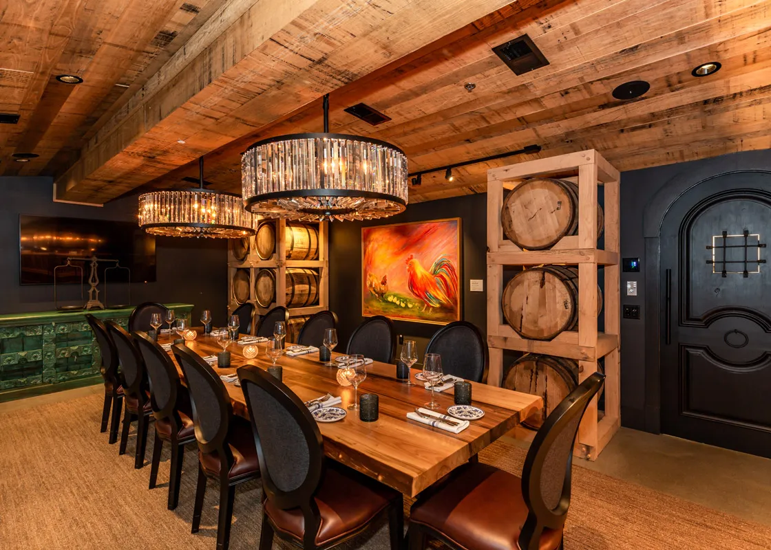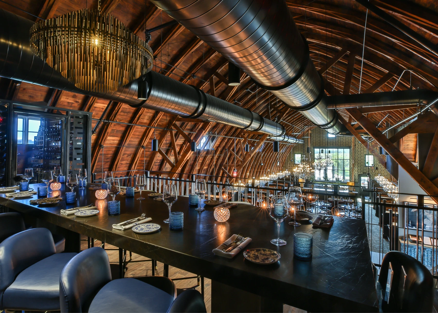 The Mason Room is a unique alternative to traditional rental spaces. Featuring brilliant chandeliers and walnut dining tables with a luxurious yet rustic feel, The Mason Room is the perfect venue for rehearsal dinner parties, corporate gatherings, and special occasions of any kind. The space can be used on its own or easily combined with the adjacent private patio. The patio lounge is perfect for hosting cocktail hours and provides casual seating areas with views of the campus and theYARD music venue.
